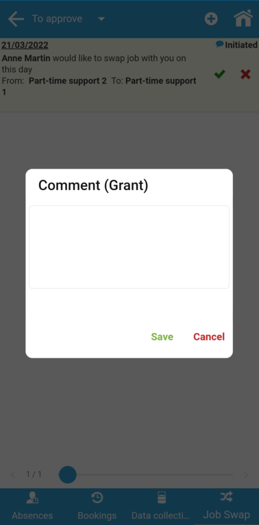 Adding a comment when approving/rejecting a job swap request in Astrow Mobile