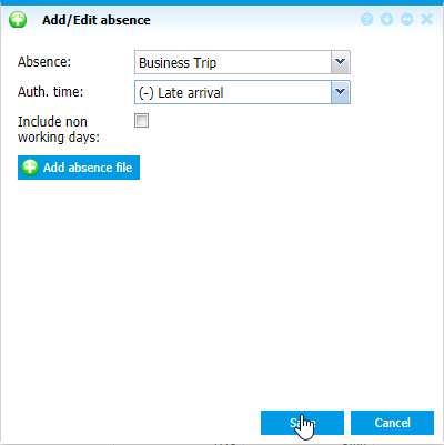Add/Edit absence window opens and you can add the absence for the days selected: