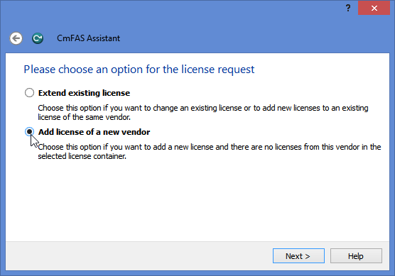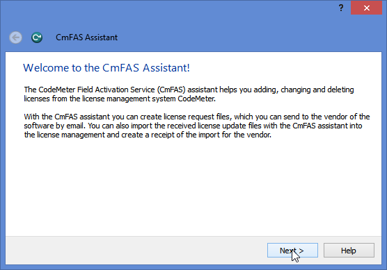 Create license request in wizard in CodeMeter Control Center for CmStick