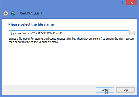 Selecting the dongle file in wizard in CodeMeter Control Center