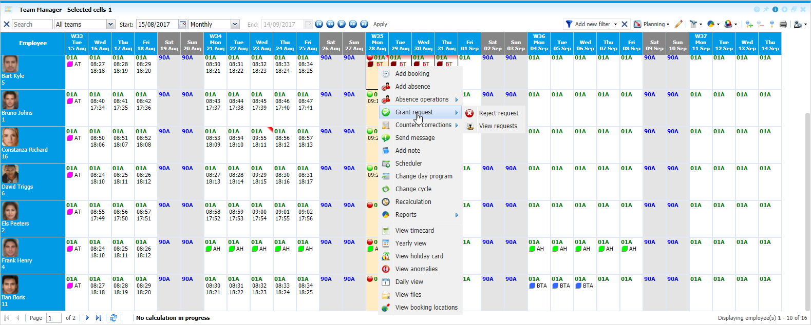 Grant/Reject Absence Requests in Multi-cell in Team Manager