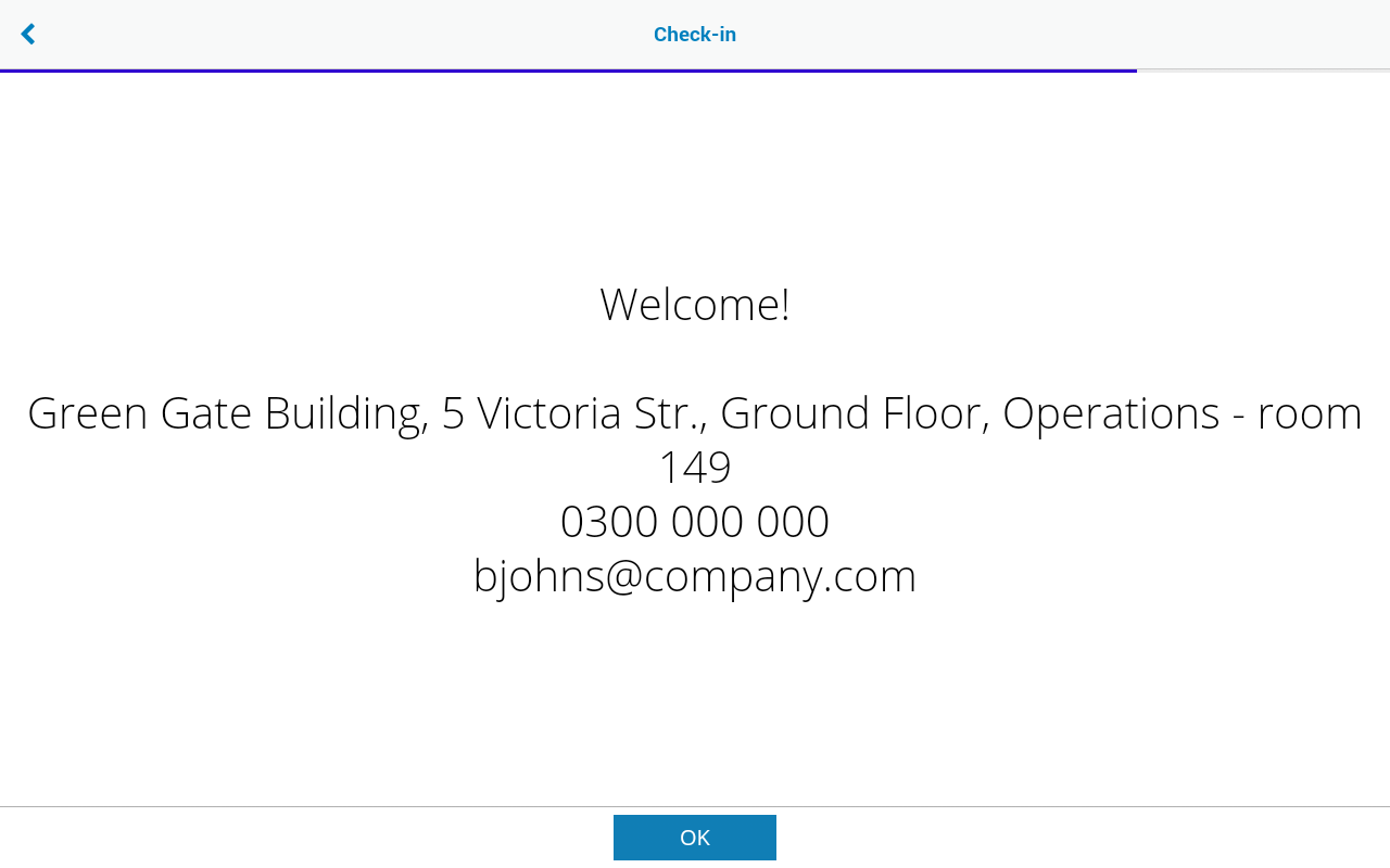 This message (e.g. Welcome!) is filled when defining the visit group and contact person.