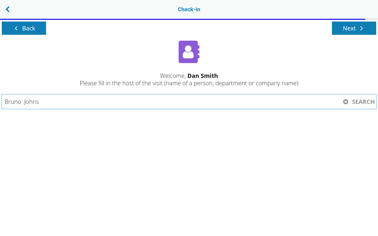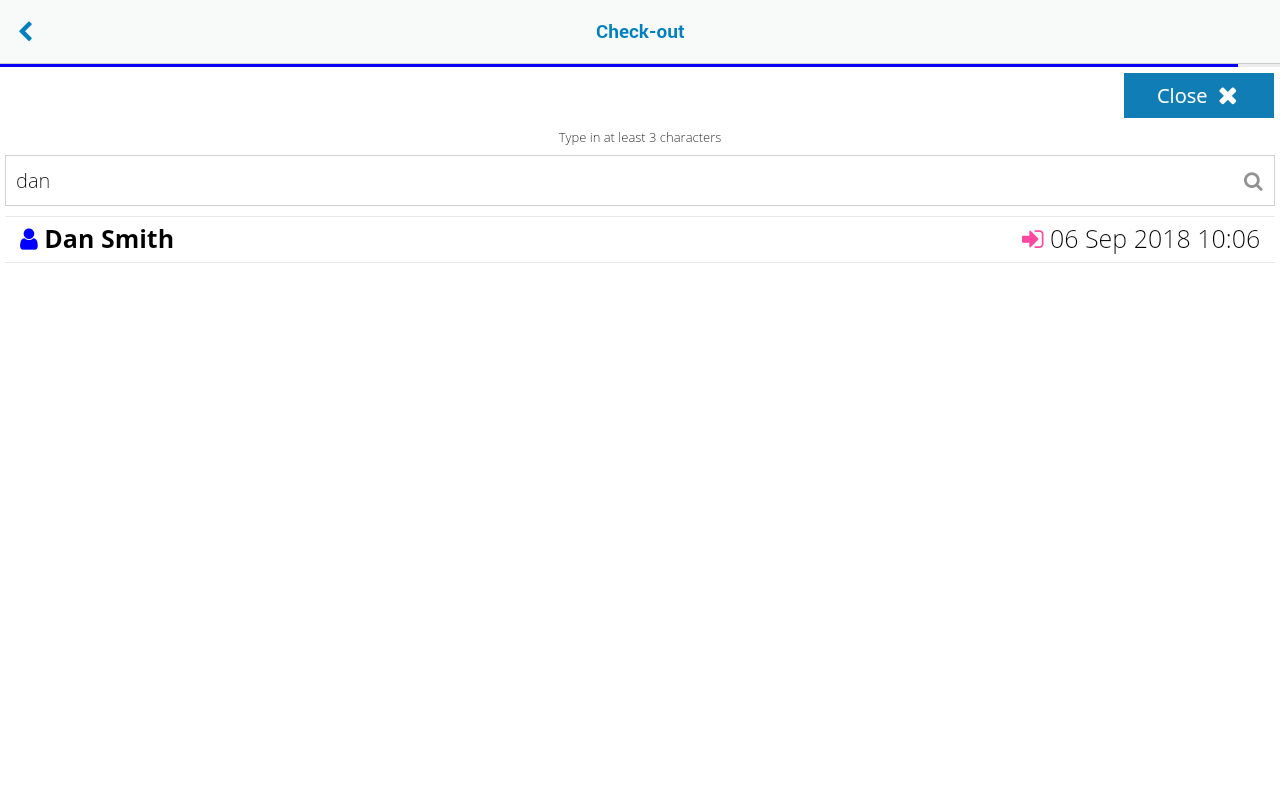 Step 9: Enter the first 3 letters from the name and select it from the list. At the first 3 letters, a list with possible visitors appears. If this doesn't happen, go to Visitor configuration and check the option Use autocomplete for check-out operation.