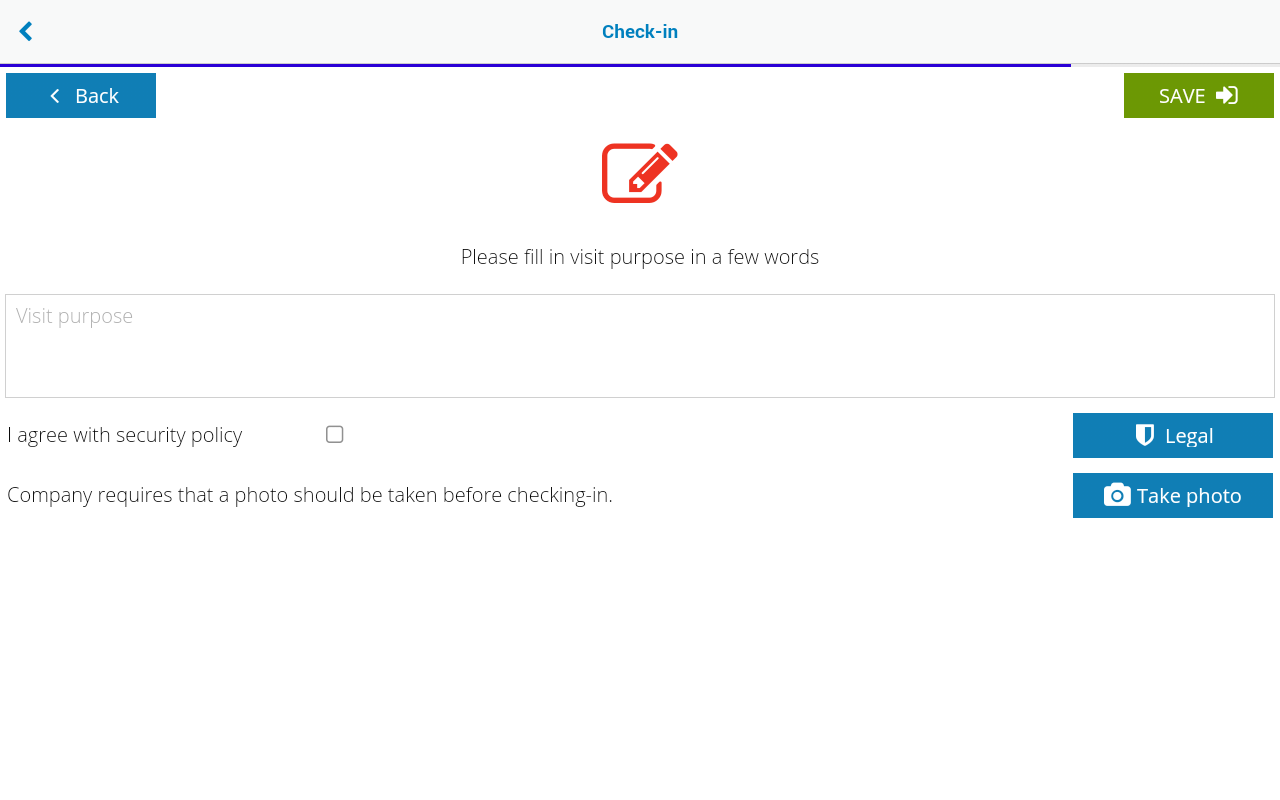 Visit purpose and GDPR for visitor registration on mobile terminal