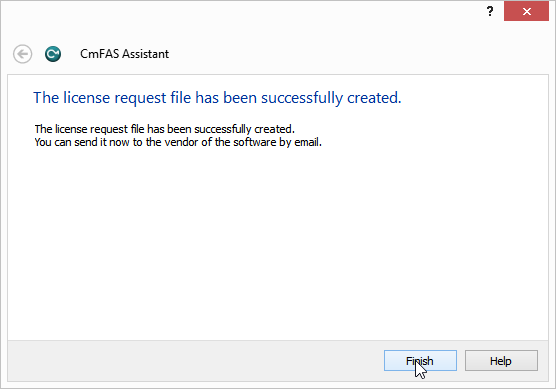 Step 7: Save the file generated in a license location. The License Request File (RAC) will be sent to Amano. Amano will generate a License Update File (RAU). Click Finish to end the operation.