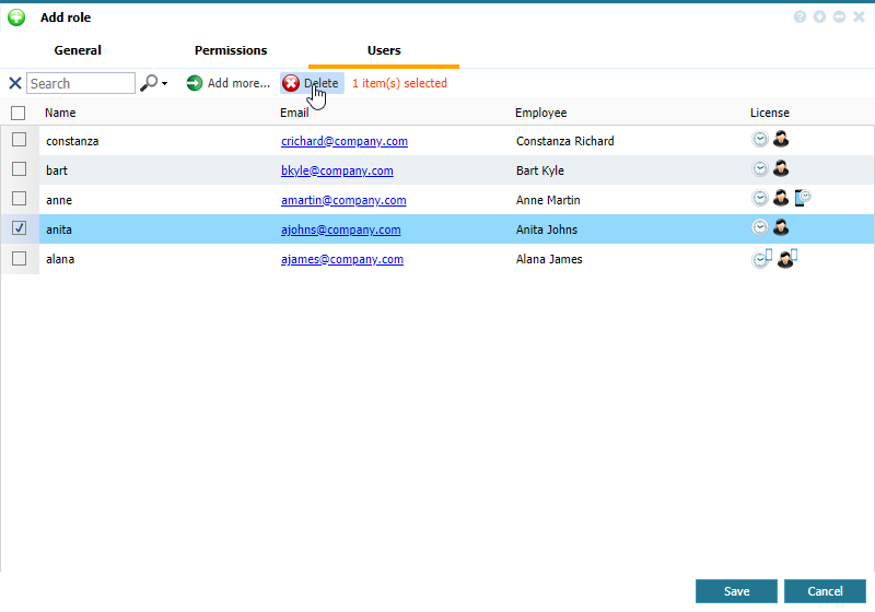 Tab Users - Add to and Delete Users from a Role Definition